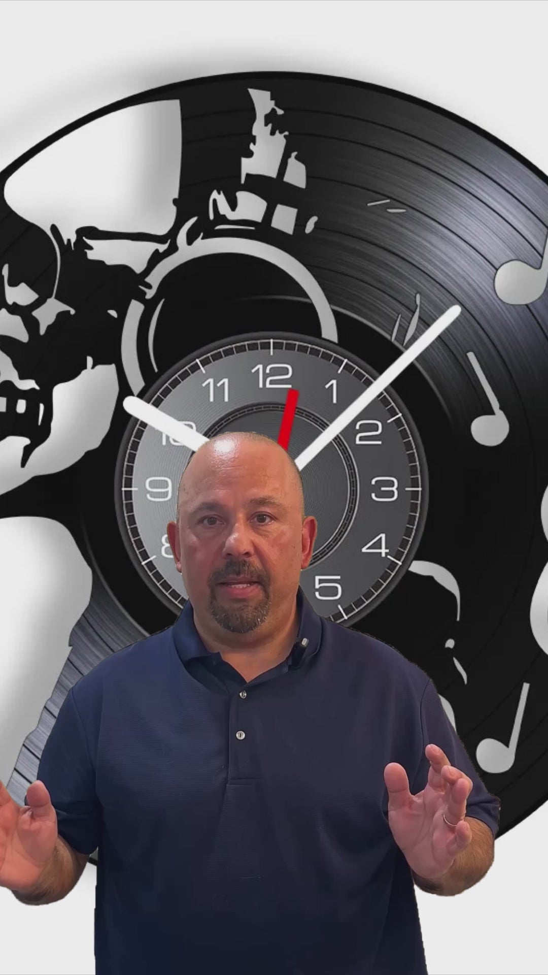 This stunning wall clock combines music nostalgia with artistic design, celebrating the timeless power of music through a detailed skull and musical note motif. Precision-cut from an authentic vinyl record, each clock is a unique piece of functional art. The silent quartz movement ensures accurate timekeeping without ticking noise, making it perfect for bedrooms, studios, or quiet spaces. The black vinyl silhouette creates a bold statement against any wall color, while the music-themed design resonates with anyone who lives and breathes music. Easy to hang with a simple hook, this clock is ready to become a conversation piece in your home.